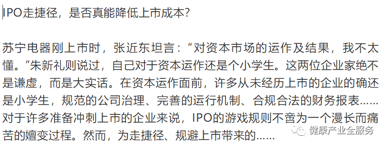 此外,还有长达两年的时间里,市政府、区政府等各级政府相关部门的关怀、行业协会的调研等,送些礼品是必不可少的,为了保持财务报表的规范,有些也走不了账,虽然单笔金额不是太大但长期下来费用也不小。在上市之后老李才明白,“有些企业上市失败两次了还要冲击上市,他们老板实际上是被上市绑架了啊。”(来源:投行业务)