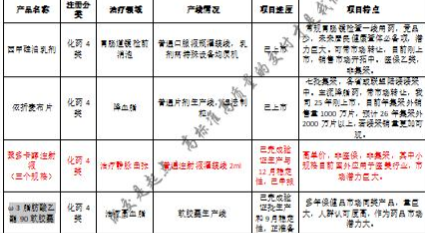 转让在产生产批件:依折麦布片、普拉洛芬滴眼液、西甲硅油乳剂;已申报产品:阿帕他胺片、艾拉莫德片、聚多卡醇注射液、ω-3脂肪酸乙酯90软胶囊;在研代申报产品:达格列净片、聚乙烯醇滴眼液。